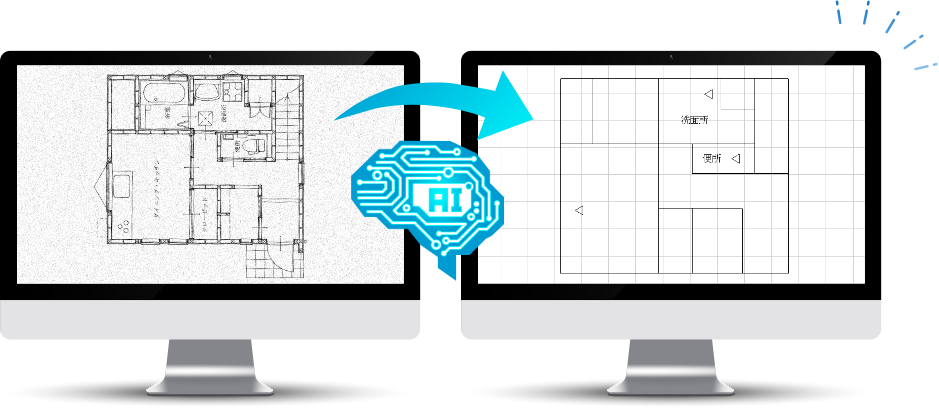 画像データやPDF・DXF図面上の壁線や敷地を自動識別し、
